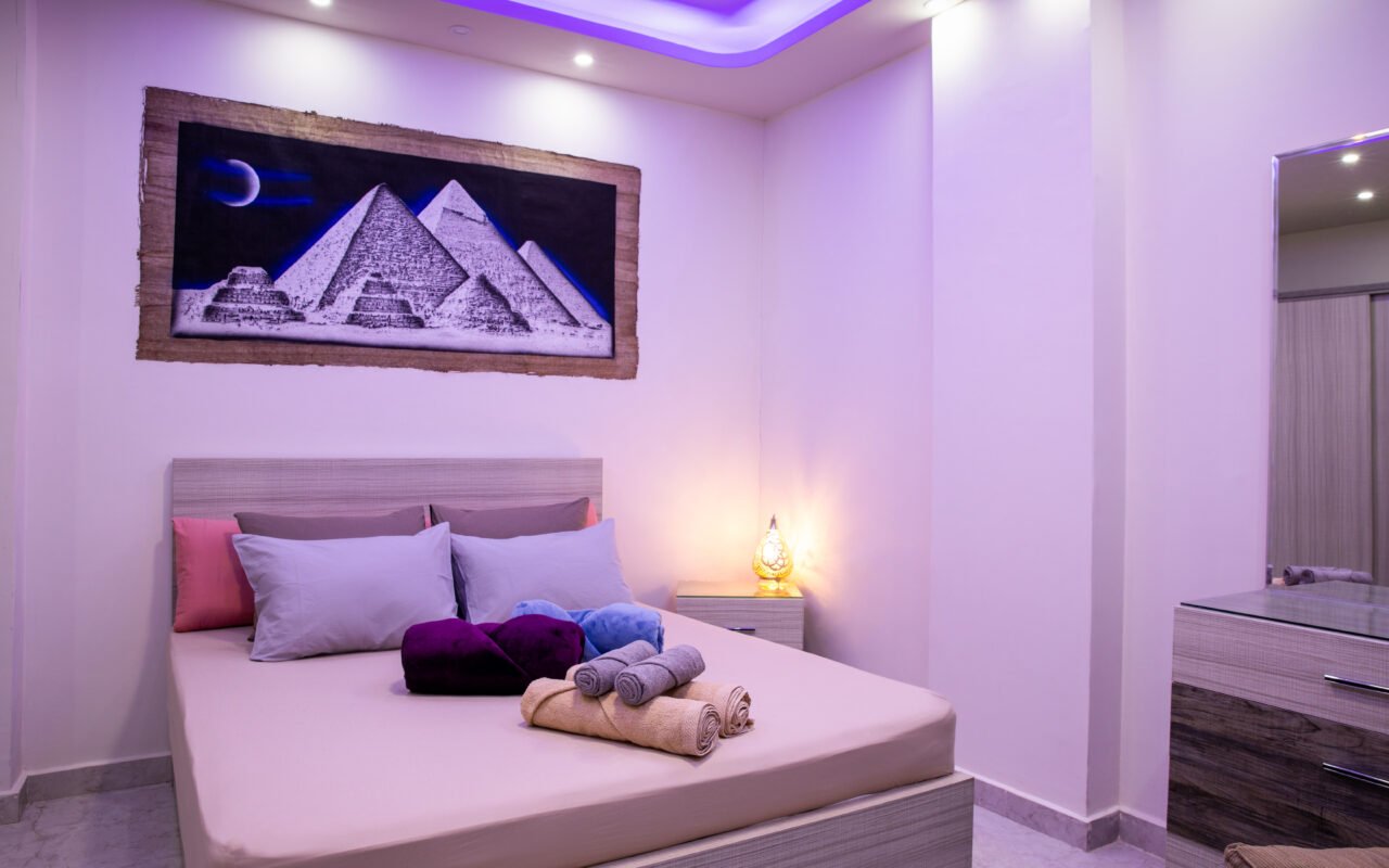 with one bedroom, bathroom, living room with sofa bed, kitchenette and large French window. The accommodation is in an amazing location, just 15 minutes away from the airport, on a quiet street in the center of Hurghada, 20 meters from the Sheraton high street and directly opposite the La Rosa Wawes Hotel. Nearby you will […]
